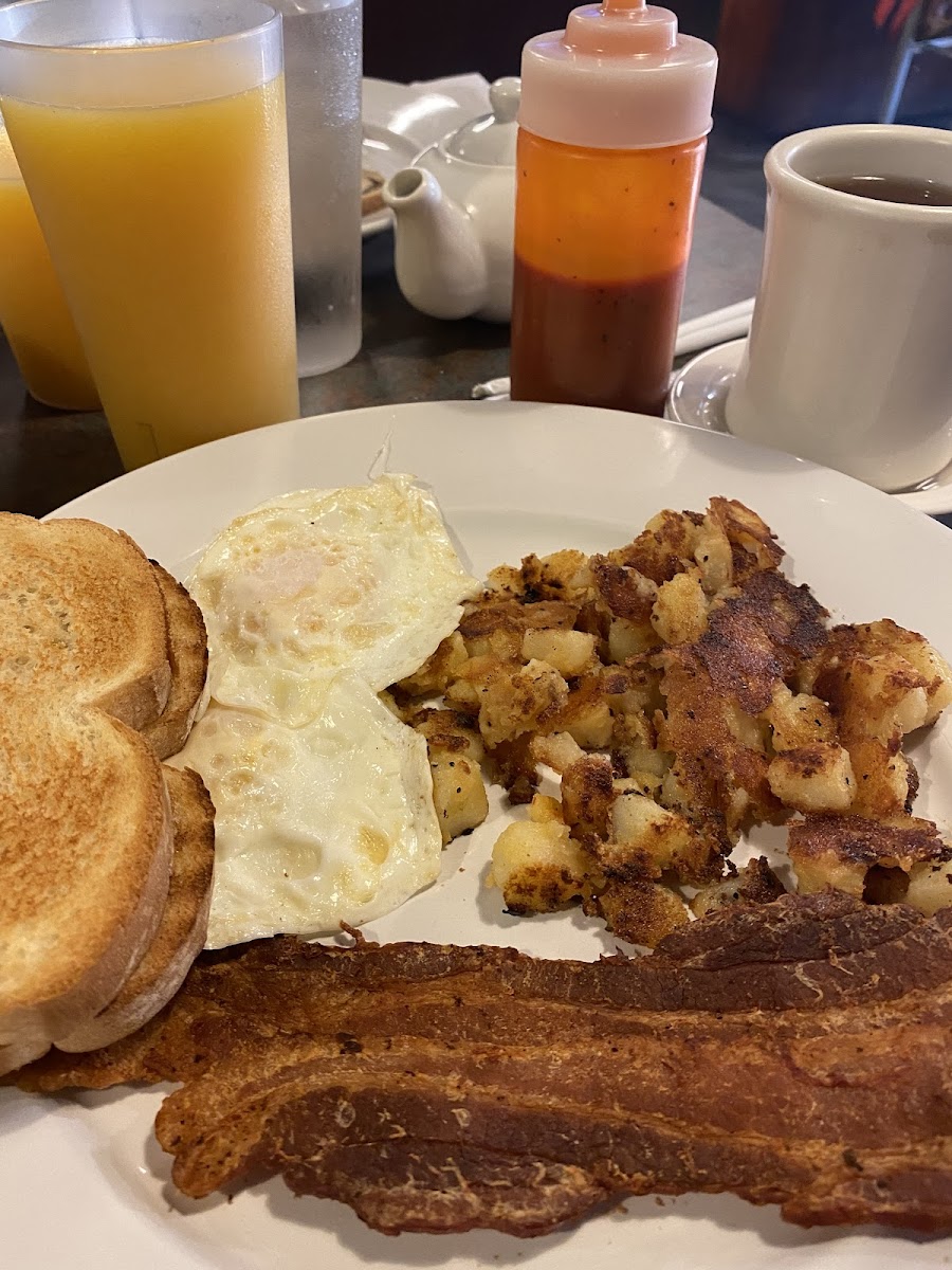 Our first time here after a dear friend told us about this dinner. It's located at a small shopping area with not many places that are open. Mostly places have relocated or closed down. It's a small adorable place with a friendly waitress there during our visit. I forget her name but she worked the morning shift on the 22nd of May, 2025. She told us about the specials and was courteous and professional, she didn't rush us with our order and has a friendly smile and attitude. We ordered the "Country Bowl" from the list of specials that day and the "Two Two Two". The food was delicious and filling, the establishment was clean and cool on a warm morning day. We have to return again and try something of the lunch menu, they only serve breakfast and lunch. The portions are great and you'll be satisfied with the amount of food served. The chef did an excellent job with our dishes, thank you.